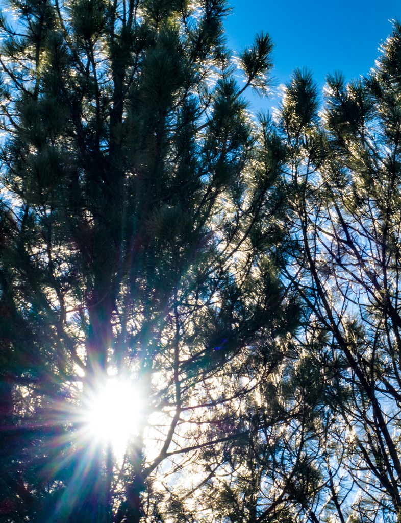 It’s dangerous to aim your camera at the sun. You could harm it as well as your eye, especially if you loook right at it for a prolongued period of time, or point the camera likewise. I am an amateur like many of my readers, so I am not 100% sure this makes it safe, but here goes— shoot through foliage. Also, if you do want the starburst as your final product, you must get a hint of it even as you point the lens toward the filtered sun. Take several. If one gives an even stronger hint of the desired outcome, work with that in “post.” Here’s the photograph I chose to work with: