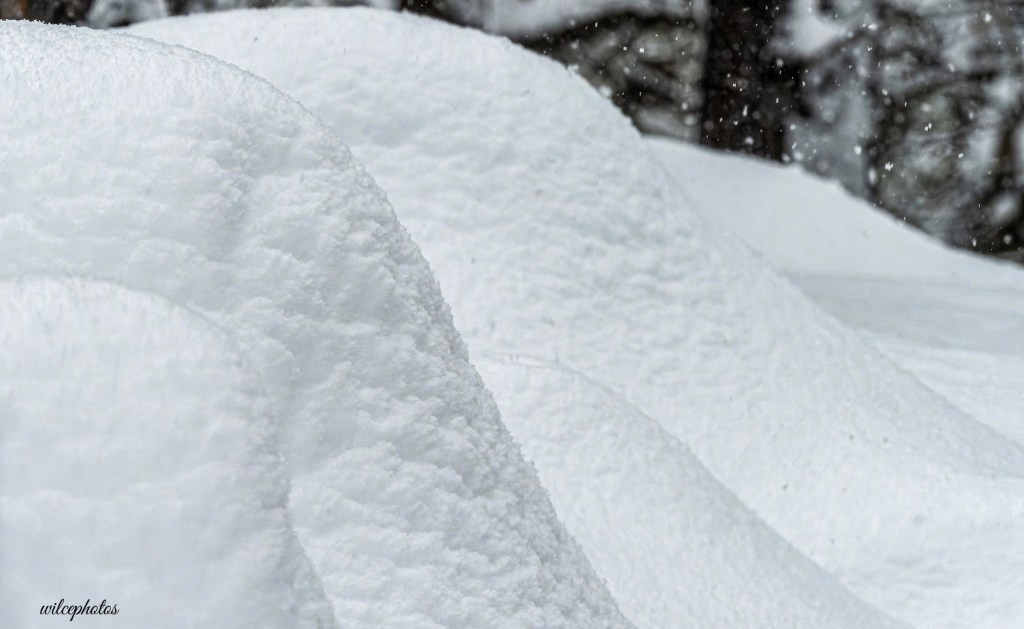 Here are two versions of the piles, mounds, or hummocks of snow in our backyard, taken this morning, January 16, 2023.