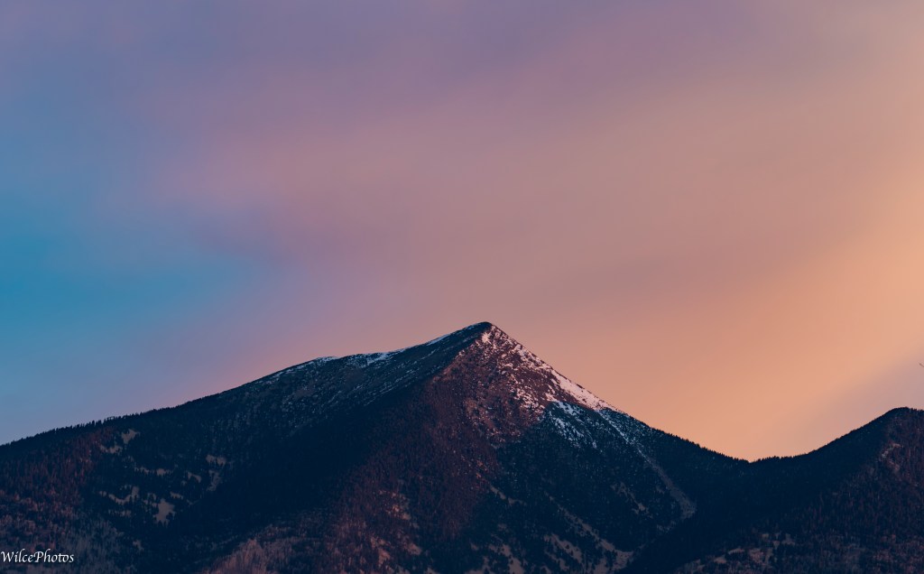 This is a digital download of a long-exposure photograph capturing the movement of the stars and cloud over the sacred San Francisco Peaks. I shot it on a tripod using a wide angle (12-40mm) lens on an OM-1 Olympus mirrorless camera.